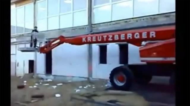 رفع تسجيل فيديو لشاب وهو يقف على طرف رافعة فيما كانت الأخيرة تسير.. فجأة توقفت الرافعة وكأنها تنبهت لوجود الشاب واعتبرت أنه غير مرغوب به، ومنحته فرصة النزول عنها بنفسه "وبكرامته".