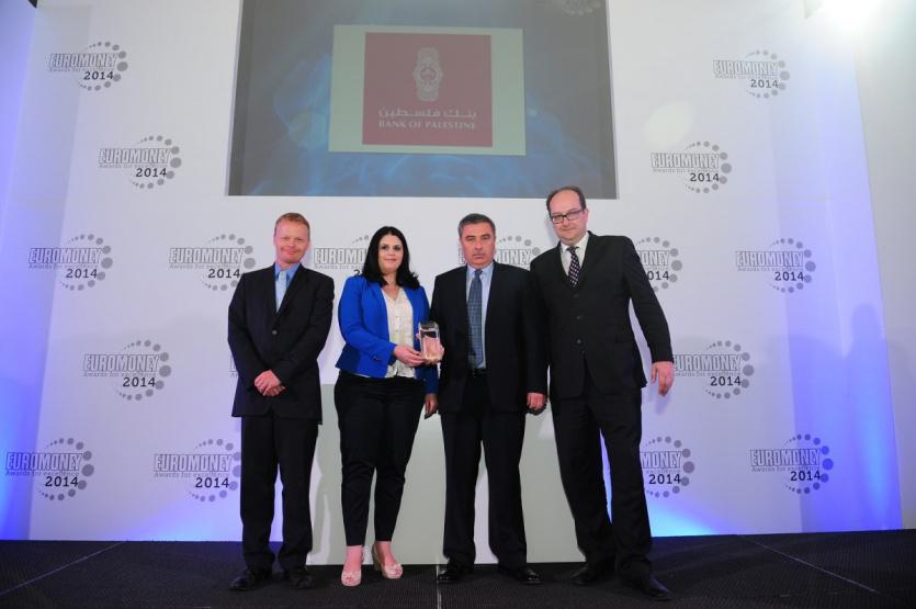 حاز "بنك فلسطين" للعام الرابع على التوالي على جائزة “أفضل بنك في فلسطين” ضمن التصنيف السنوي لمجلة المال العالمية البارزة Euromoney للعام 2014، وذلك ضمن معايير تصنيف كمية ونوعية من بينها مؤشرات الأداء الرئيسية KPI تتبعها المجلة سنوياً، لتتمخضت عن فوز الحائزين على أفضل التصنيفات بالجائزة في دول منطقة الشرق الأوسط وشمال افريقيا. وجرى حفل توزيع الجوائز في فندق مدينة الجميرا/ بإمارة دبي في دولة الإمارات العربية المتحدة، بمشاركة عدد من رواد القطاع المصرفي العالمي، وتسلمها كل من السيد رشدي الغلاييني، نائب المدير العام، والسيدة رندة موسى، مساعد رئيس دائرة التدريب والموارد البشرية في بنك فلسطين.