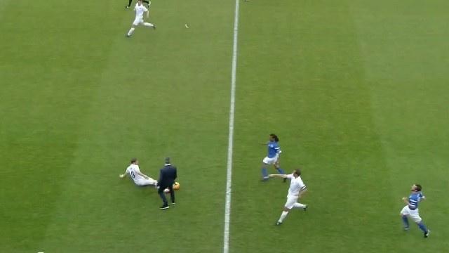 وتدخل مورينيو الذي لم لكن لاعبا مؤثرا أبدا، في الوقت المناسب وقطع الكرة بمهارة على طريقة المدافعين الكبار، من أمام مغني البوب أولي مارس بعد "عرقلته"، في لقطة طريفة جداً، ليخرج مبتسما، وأسعد معه الجماهير التي حضرت المباراة.