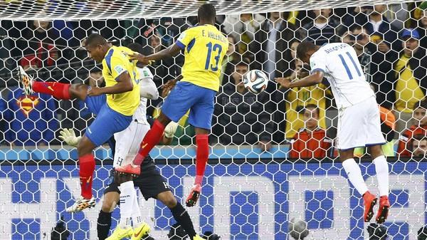 نجحت الاكوادور في المحافظة على امالها بالتأهل الى الدور الثاني للمرة الثانية في تاريخها بالفوز على هندوراس 2-1 اليوم الجمعة على ملعب "ارينا دا بايكسادا" في كوريتيبا في الجولة الثانية من منافسات المجموعة الخامسة لمونديال البرازيل 2014.