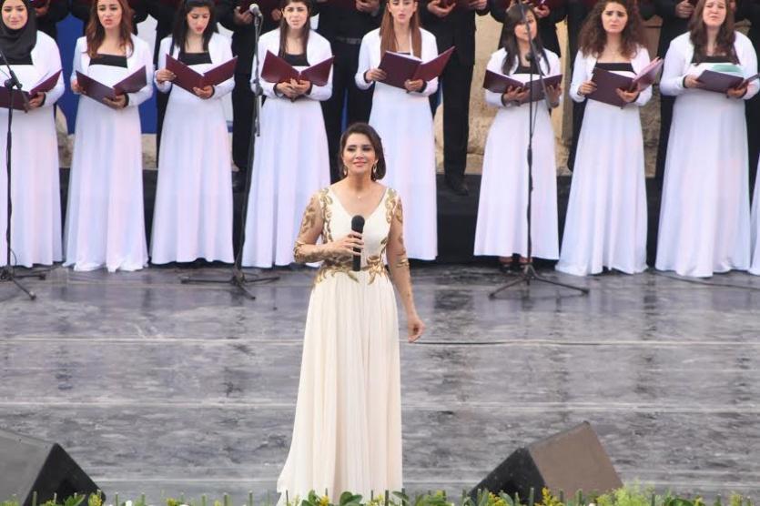 و أيضاً عبرت عن سعادتها بوجود اوركسترا وكورال المعهد الوطني بقيادة المايسترو محمد عثمان صديق، الذي ابدع في دمج أغنيتها الخاصة "بلدنا غير" كلمات وألحان وائل الشرقاوي الذي تفاعل مع كلماتها الجمهور، مع رائعة موسيقار الأجيال محمد عبد الوهاب "اردن ارض العزم" وأغنية "جنة جنة الله يا بلدنا"، و ظهرت نجمة حفل افتتاح مهرجان جرش بفستان رائع من وحي روماني إغريقي من تصميم المصمم الاردني حكيم. و أيضاً تحلت باوراق ذهبية من مجوهرات دار شوكت الشامي.