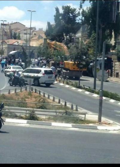 وكانت الشرطة الاسرائيلية قد قالت اليوم إن سائق جرافة صدم حافلة اسرائيلية بشكل متعمد ما أدى الى انقلابها، وقد أصيب سائق الحافلة الاسرائيلي بجروح وصفت بالبسيطة بالاضافة الى اربعة اخرين، وقتل أحد المارين.