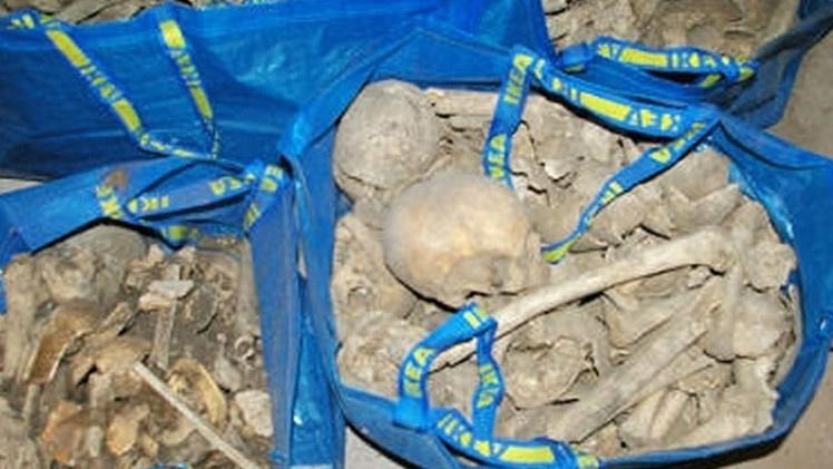 عثرت سيدة سويدية على جماجم وعظام تعود لـحوالي 80 شخصا محفوضة في عدة أكياس تحمل شعار شركة "إيكيا" الشهيرة للموبيليا. وقد عثرت السيدة على هذه الأكياس في داخل سرداب كنيسة.