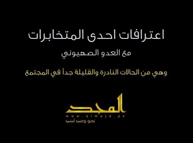 نشر موقع المجد الأمني التابع لكتائب القسام الجناح العسكري لحركة حماس اعترافات إحدى المتخابرات مع الاحتلال الإسرائيلي.