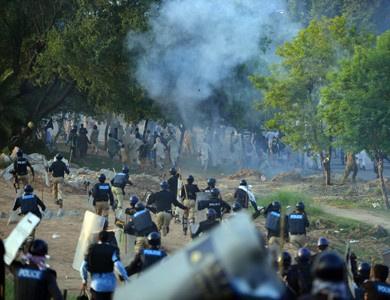 وفاة شخص واصابة 400 في المواجهات بين الشرطة والمحتجين باسلام اباد