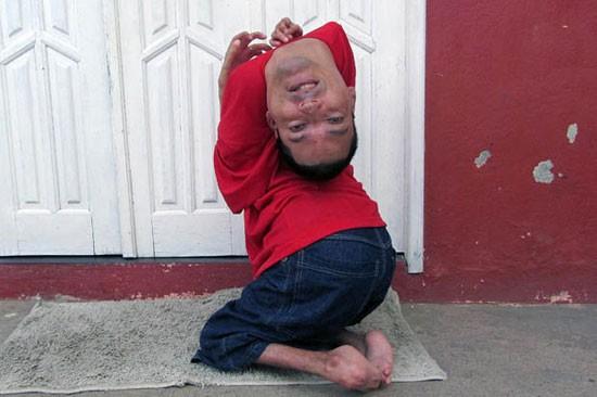 وتقول صحيفة "ديلى ستار" البريطانية إن البرازيلى دو أولفيرا ولد بأرجل مشوهة ولا يستطيع استخدام ذراعيه ويديه ورقبته مقلوبة بحيث تحمل رأسه بالمقلوب على رأسه، ورغم ذلك لم ييأس بل تحدى جميع ظروفه وأصبح محاسبا ومتحدث ملهما للعامة.