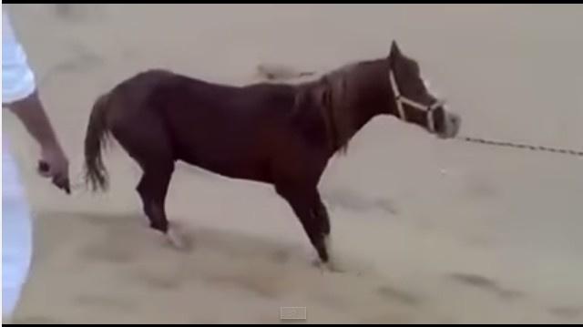 اظهر شريط مصور على الانترنت، 3 اشخاص يعدمون حصانا رميا بالرصاص في مكان صحراوي مجهول.