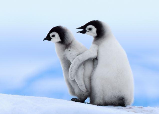 وتظهر تلك الصور واللقطات الرائعة أحد البطاريق وهو يشرح لصديقه البطريق الصغير كيفية تعلم المشي؛ حتى يسيرا معاً بصورة سلسة.