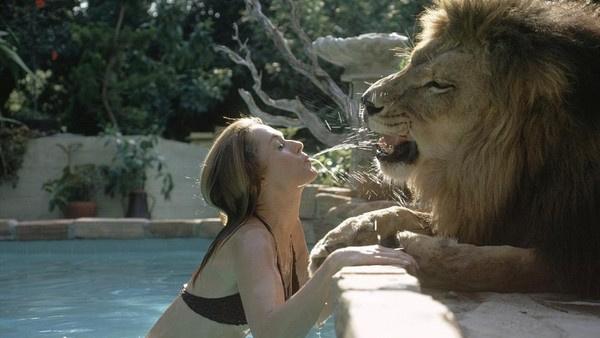 بالصور: في بيتنا أسد.. ينام بجوار ميلاني غريفيث