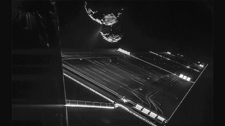 ويبدو أن المركبة لم تستطع التقاط هذه الصورة المدهشة دون مساعدة صديق، والذي كان المسبار "فيلة" المرافق للمركبة، والذي يجري حاليا الاستعدادات النهائية لهبوطه التاريخي على سطح المذنب في نوفمبر/تشرين الثاني المقبل.