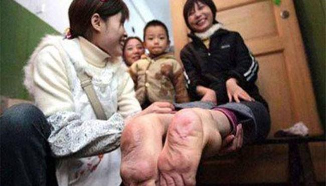 فتاة صينية ولدت مع مرض نادر لا يوجد له علاج بعد جعل قدميها الاثنين ينقلبا للخلف، ولم يجد الأطباء علاج لمرضها بعد، ولكن أهم ما يميز هذه الفتاة هو عزيمتها القوية وروحها المرحة التى لا تجعل مرضها وإعاقتها يؤثروا عليها بأى طريقة سلبية.