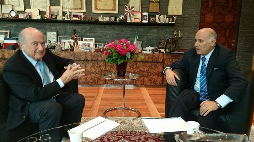 اللواء الرجوب يقدم لبلاتر ملفاً عن الجرائم الإسرائيلية بحق الرياضة الفلسطينية