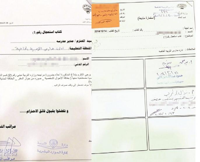 استدعت وزارة التربية والتعليم الكويتية، موظفة "متوفاة" منذ 6 سنوات؛ لمراجعة الشؤون الإدارية وتوزيدها بالبيان المطلوبة مصطحبةً معها بطاقة الأحوال الشخصية وصورةً من جواز السفر والبطاقتين المدنية والبنكية.