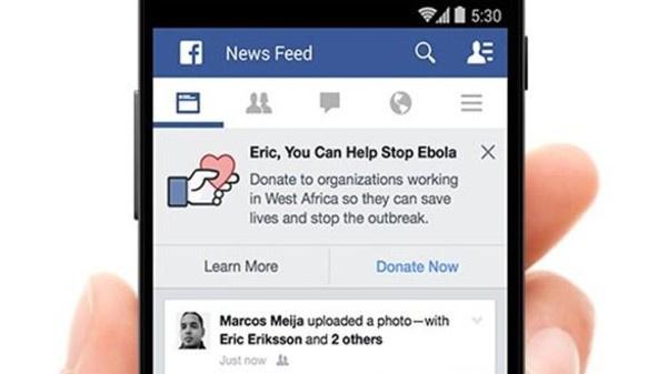 أعلنت شركة فيسبوك أنه سيكون بإمكان مستخدمي موقعها الشهير للتواصل الاجتماعي الآن التبرع مباشرة لعدة مؤسسات خيرية معنية بالإغاثة من مرض الإيبولا من خلال زر أعلى صفحاتهم الشخصية على الموقع.