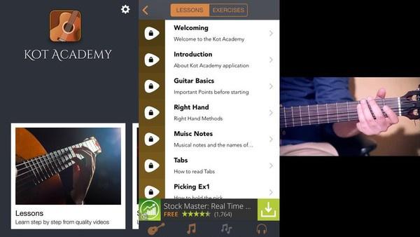 ويمكن لمستخدمي آيفون تجربة تطبيق Kot Academy المجاني، والذي يقدم دروسا احترافية لتعليم العزف على الغيتار بأكثر من طريقة أو أسلوب.