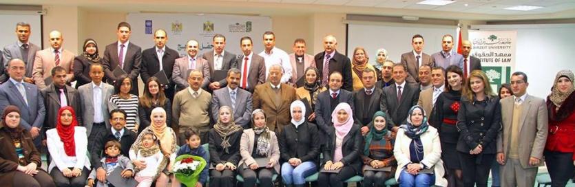 أقام معهد الحقوق في جامعة بيرزيت حفل تخريج برامج الدبلومات المهنية المتخصصة في الصياغة التشريعية والمهارات القانونية، حيث تم تخريج 44 مشاركًا، بحضور كل الدكتورة سامية حليلة نائب جامعة بيرزيت للشؤون المجتمعية، ومعالي القاضي علي مهنا رئيس مجلس القضاء الأعلى ورئيس المحكمة العليا، وعطوفة الأستاذ إياد تيم وكيل وزارة العدل، والمستشار فواز أبو زر مساعد الأمين العام للشؤون القانونية في مجلس الوزراء، والأستاذ عبد الرحمن اليسع ممثل برنامج الأمم المتحدة الإنمائي، والأستاذ جميل سالم مدير معهد الحقوق.