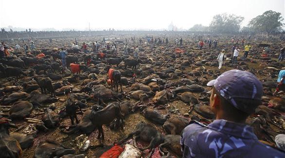 تحولت قرية نيبالية إلى أكبر مسلخ للحيوانات في العالم مع بدء أتباع الديانة الهندوسية طقساً قديماً يقوم على ذبح آلاف الحيوانات.
