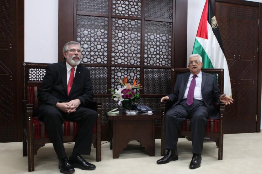 استقبل الرئيس محمود عباس، بمقر الرئاسة في مدينة رام الله، ظهر اليوم الخميس، زعيم حزب الشين فين الإيرلندي، جيري آدامز .