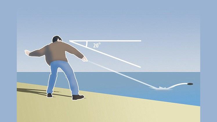 حدد عالم أمريكي مقدار الزاوية المثالية لرمي الحجر ليرتد عن سطح الماء مرات عديدة.