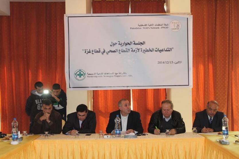 نظمت شبكة المنظمات الاهلية في غزة جلسة حوارية بعنوان "التداعيات الخطيرة لأزمة القطاع الصحي في قطاع غزة" اليوم الاثنين في فندق الكومودور بمشاركة كبيرة من الاطباء والجمعيات المحلية والدولية ومنظمة الصحة العالمية.