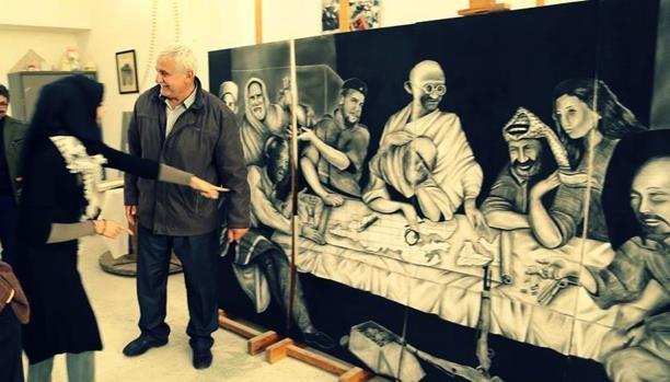 وكانت اللوحة الفنية مشروع تخرّج الفنانة التشكيلية خلود الدسوقي من جامعة الأقصى بمدينة خان يونس، جنوب قطاع غزة. وقد لفت ما رسمته الفتاة العشرينية انتباه عدد كبير من الحضور، الذين أبدوا إعجابهم باللوحة التي اختصرت أزمنة وثقافات ومراحل مختلفة من حياة الرموز الكبيرة التي تناولتها ريشتها، وقد جلسوا جميعاً على طاولة مزيّنة بالخريطة والبنادق.