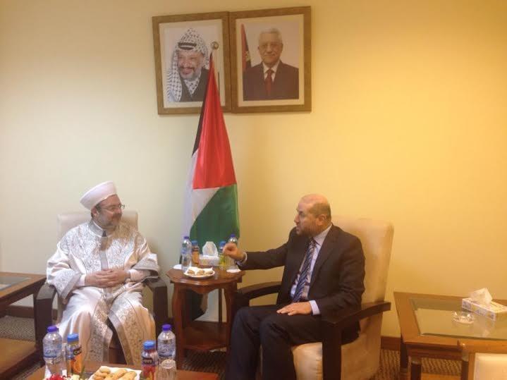 التقى معالي الدكتور محمود الهباش قاضي قضاة فلسطين مستشار الرئيس للشؤون الدينية والعلاقات الاسلامية معالي وزير الأوقاف التركي الدكتور محمد غورماز، وذلك بمقر الرئيس في بيت لحم.