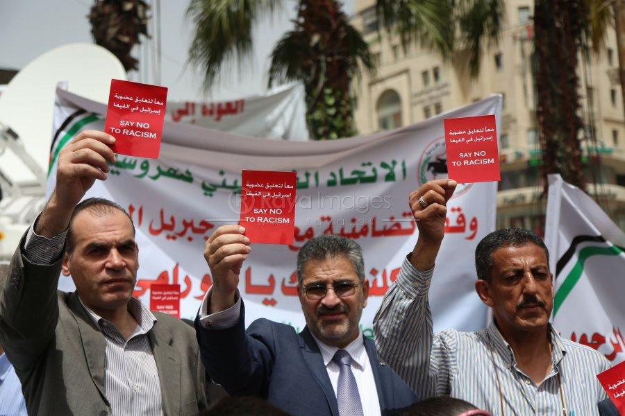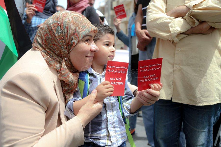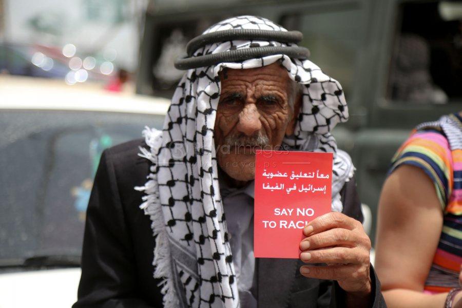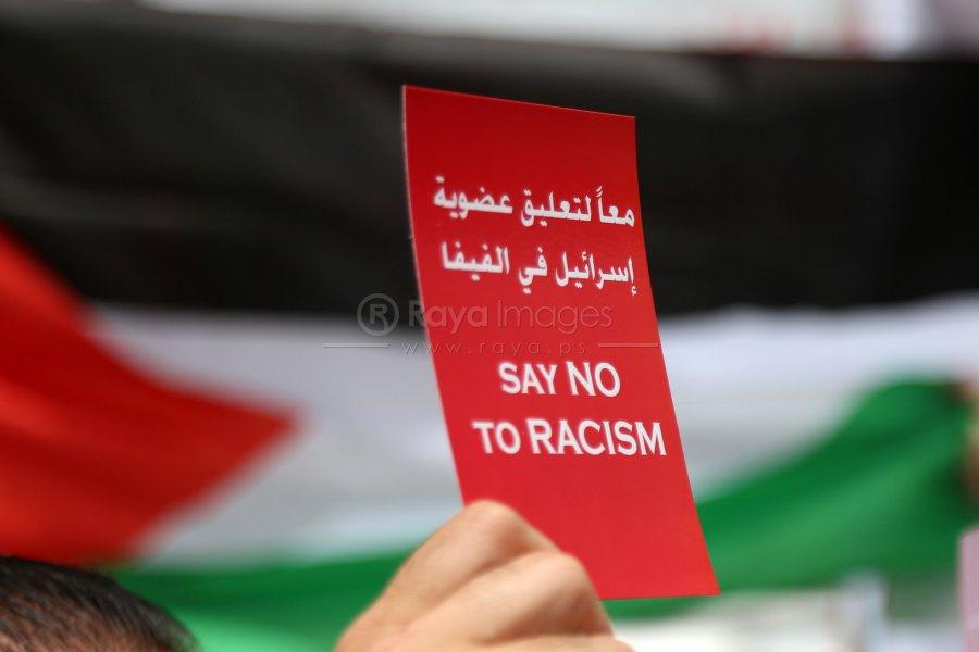 وقفه تضامنية دعما للتوجة الفلسطيني في طرد اسرائيل من "الفيفا"
