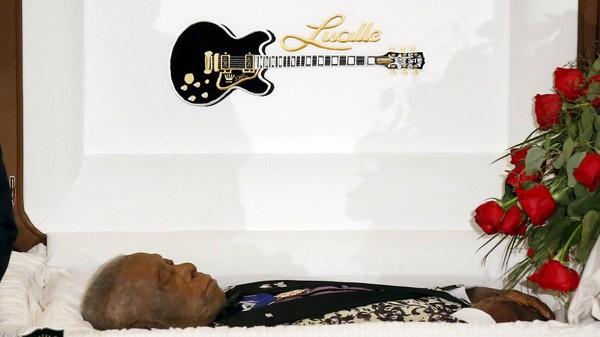تجمع المئات من محبي أسطورة موسيقى البلوز الأميركي، "بي بي كنغ" في مدينة إنديانولا في ولاية مسيسيبي لإلقاء النظرة الأخيرة عليه قبل مواراته الثرى.