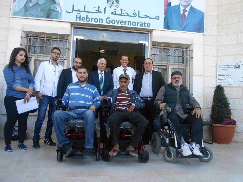 قدم محافظ محافظة الخليل كامل حميد وبالتعاون مع شركة راية للاعلام والنشر أربع كراسي كهربائية كمكرمة رئاسية لعدد من ذوي الاعاقة في الخليل.