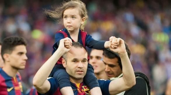 وكان إنييستا وزوجته آنا أورتيز قد رزقا بطفلتهما الأولى فاليريا قبل شهر ونصف من نهائي بطولة دوري الأبطال الأوروبي عام 2011 ، الذي فاز خلاله برشلونة على مانشستر يونايتد 3-1 على ملعب ويمبلي في لندن.