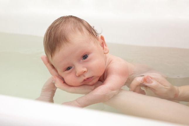 ـ بعد سقوط السرة، يمكن إعطاء المولود حماماً في حوض الاستحمام الخاص به، ويراعى ملء ثلث الحوض تقريباً بالماء الدافئ.