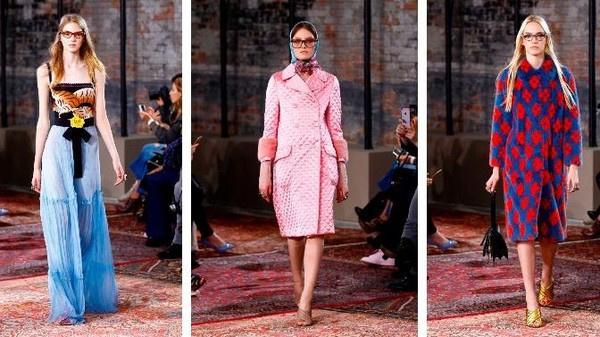بدأ العرض بثوب متوسط الطول ذي أكمام طويلة تزيّنه الطبعات بألوان الأحمر، والكحلي، والبيج، ثم تبعته مجموعة من الإطلالات المستوحاة من أناقة الستينيات والسبعينيات، تضمّنت تايورات من التويد مع قمصان تزيّنت بالكشاكش والعقد، أثواب طويلة مطرّزة بالورود الملوّنة، معاطف من الفرو الملوّن، وجاكيتات بلايزر مع بنطلونات مطبّعة.