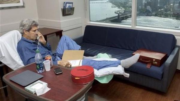 وقال كيري في تغريدة: "أشعر بتحسن بعد أسبوع على الجراحة. أجريت دردشة مفيدة اليوم مع السفيرة رايس ومع فريق كبار مسؤولي وزارة الخارجية. العمل مستمر".