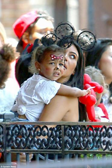 وظهرت كارداشيان في الصور التي نشرتها صحيفة" ديلي ميل" وقد وضعت على رأسها أذني ميني ماوس، فيما ظهرت نورث بنفس الشكل، بالإضافة إلى رسومات زينت وجهها، حيث بدت رائعة بخدود ميني ماوس الوردية.