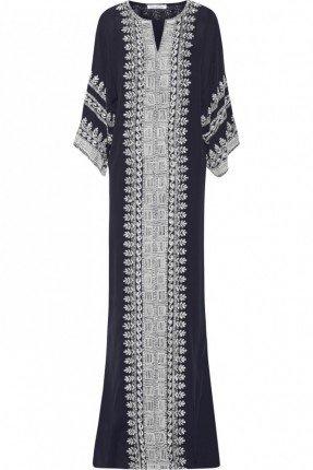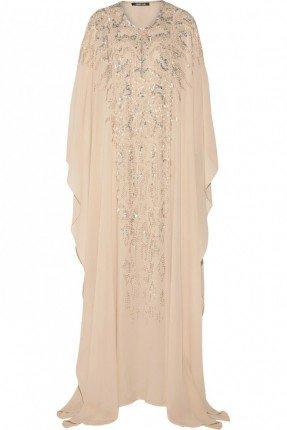 ولمن تفضّل الطابع الأكثر شرقيّة، اختاري فستاني "Roberto Cavalli" و"Oscar De La Renta" بقصّة الجلابيّة، الأول بلون البيج الزهري الهادئ مزخرف بشك مموّج بين الفضّي والزهري، والثاني باللون الكحلي بتطريزات شرقيّة رائعة بخيوط فضيّة.