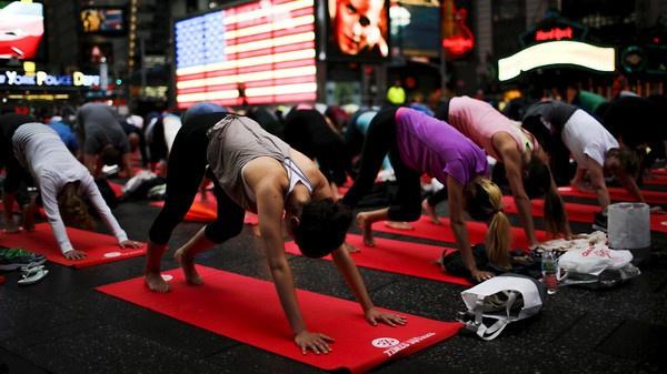 احتفالاً بأول يوم عالمي لليوغا، خرج الآلاف من محبي تلك الرياضة حول العالم إلى الطرقات للمشاركة في جلسة جماعية تقوم على الفكر والبدن والروح.