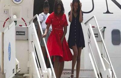 تعرضت سيدة أمريكا الأولى “ميشيل أوباما”، زوجة الرئيس الأمريكي باراك أوباما، لموقف محرج عقب وصولها إيطاليا، حينما فاجئتها الرياح على سلم الطائرة ورفعت فستانها إلى أعلى، مما دفعها للإمساك به سريعًا، وهي إلى جوار ابنتيها “ساشا” و”ماليا”.