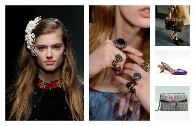 ومجموعة الاكسسوارت المتنوّعة ضمن هذه المجموعة استوحيت أيضاً من نفس الفكرة، واستمدت تصاميمها من عراقة الماضي وذكرياته الجميلة ومن الزمن الحاضر والمستقبل المعاصر. وقد شملت حقائب اليد الجلدية الفاخرة أو القماشية التي حافظت في تصاميمها على طابع دار Gucci العريق، مع إعادة ترجمة رموز الدار، من الرمز لحرف "G" المضاعف، أو النقوش على الأقمشة بطريقة جديدة تلائم الزمن الحالي، كما كان هنالك مجموعة من الأحذية المُبتكرة، التي دخل في تصميمها الفرو والخشب والجلود الملونة، بالإضافة إلى القبّعات والأحزمة والمجوهرات من خواتم وأقراط مميّزة.