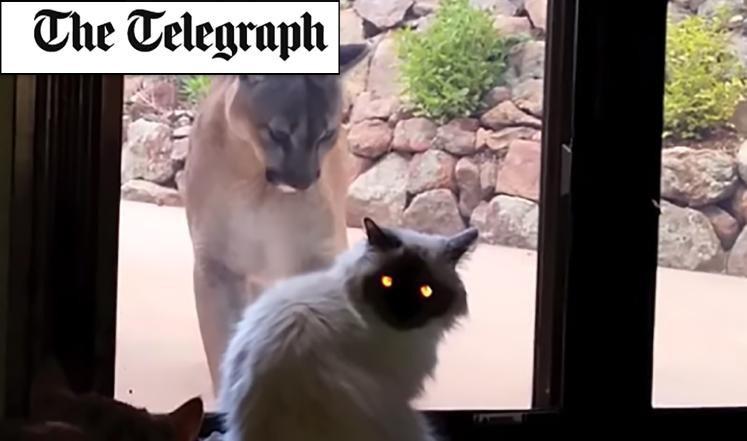 أظهر قط أليف شجاعة نادرة في مواجهة أسد جبلي حاول دخول منزل الأسرة الذي يعيش فيه بمدينة لويسفيل بولاية كنتاكي الأميركية، حيث وقف رابط الجأش دون وجل بينما كان الأسد الأميركي يحاول فتح باب منزلق بمخالبه في محاولة للتسلل داخل البيت.