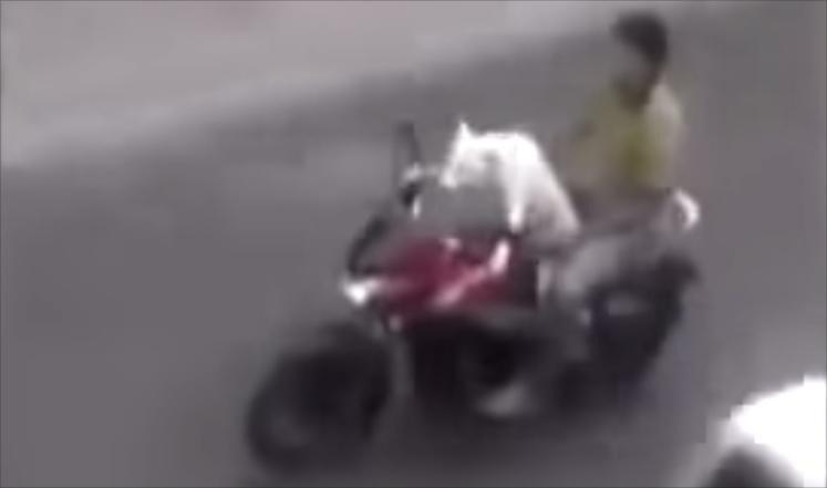 وأظهر الفيديو الذي نشر الأسبوع الماضي الرجل واضعا كلبه أمامه، وهو يبدو كأنه يقود دراجة هوندا دريم خلال المساء، كما ظهر الرجل في الفيديو وهو يشجع الكلب قائلا "رائع".