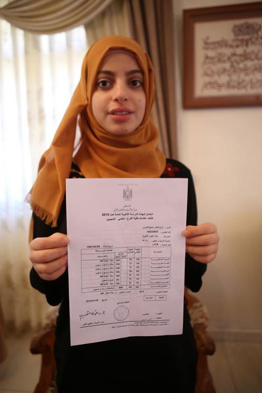 وقالت الطالبة قادوس لـ"رايــة" التي تخرجت من مدرسة بنات البيرة الثانوية إنها تهدي تفوقها لعائلتها واصدقائها الذين وقفوا بجانبها طيلة فترة الثانوية العامة، وتضيف:"عزمت على ان لا أخذل أحداً تمنى لي هذه النتيجة، وقررت أن أبذل قصارى جهدي لأحقق ما يمتنوه لي، وكان لهم ذلك".