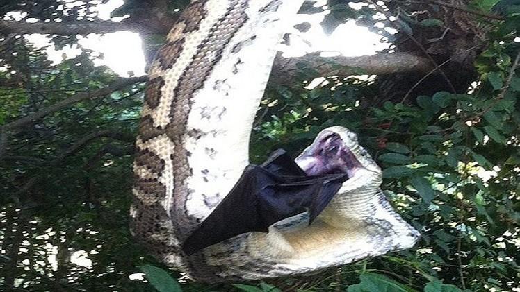صور صادمة لثعبان يأكل خفاشا ضخما