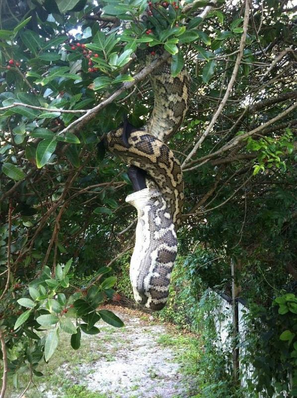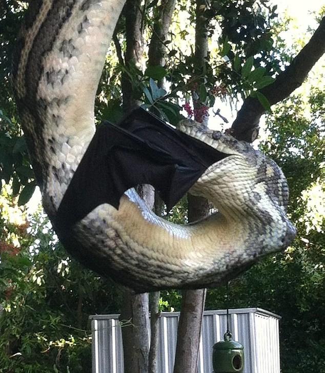وتمكن صاحب المنزل من التقاط الفيديو في الفناء الخلفي إذ يمكن رؤية أجنحة الخفاش عالقة في فكي الثعبان الملتوي على شجرة والذي يبلغ طوله حوالي 3 أمتار.