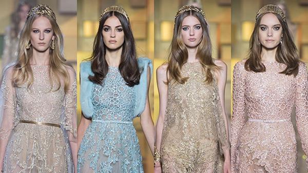 "ظلال ذهبية" هو العنوان الذي أطلقه المصمم اللبناني إيلي صعب على مجموعة تصاميمه من الخياطة الراقية لخريف وشتاء 2015 التي عرضها مؤخراً ضمن فعاليات أسبوع باريس للموضة.