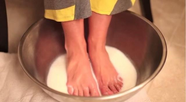 ليس عليكم إلا خلط نصف ليتر من الحليب مع كيسين أو ثلاثة من بودرة البايكينغ صودا، ثمّ نقع أقدامكم في المزيج لمدّة 10 دقائق لتحصلون على كعب قدمين ناعمٍ وصحّي!