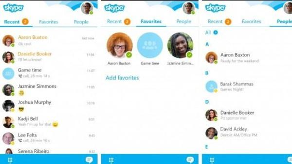 كما قامت خدمة سكايب – المملوكة لشركة مايكروسوفت – بجعل الصور الشخصية لجهات الاتصال دائرية الشكل في كافة أرجاء التطبيق، كما أن حالة الاتصال الخاصة بجهات الاتصال أصبحت تظهر أعلى كل محادثة في كل التطبيق.