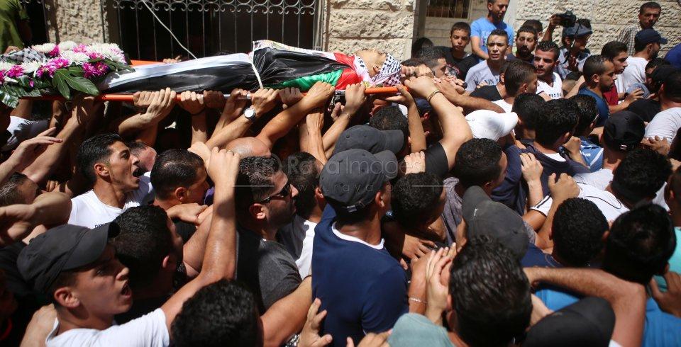 ولف الجثمان بالعلم الفلسطيني، وحمل على الأكتاف، وسط هتافات منددة بالممارسات الإسرائيلية، وصيحات الإنتقام والتكبيرات، فيما أطلق مسلحون ملثمون الرصاص الحي في الهواء خلال مراسم التشييع.