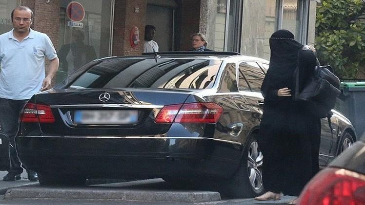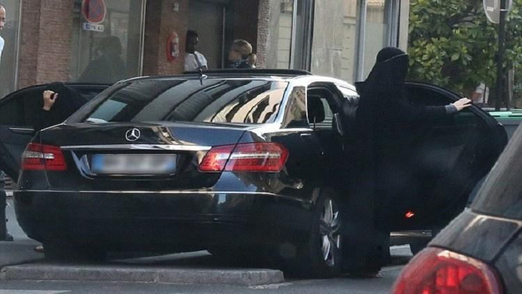 وبفضل الثوب الأسود الذي يغطي العارضة من الرأس إلى أخمص القدمين لا يمكن معرفة هويتها، لولا وجود سائقها الذي يرافقها منذ وقت طويل، الأمر الذي لفت أنظار المصورين.