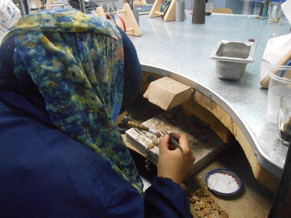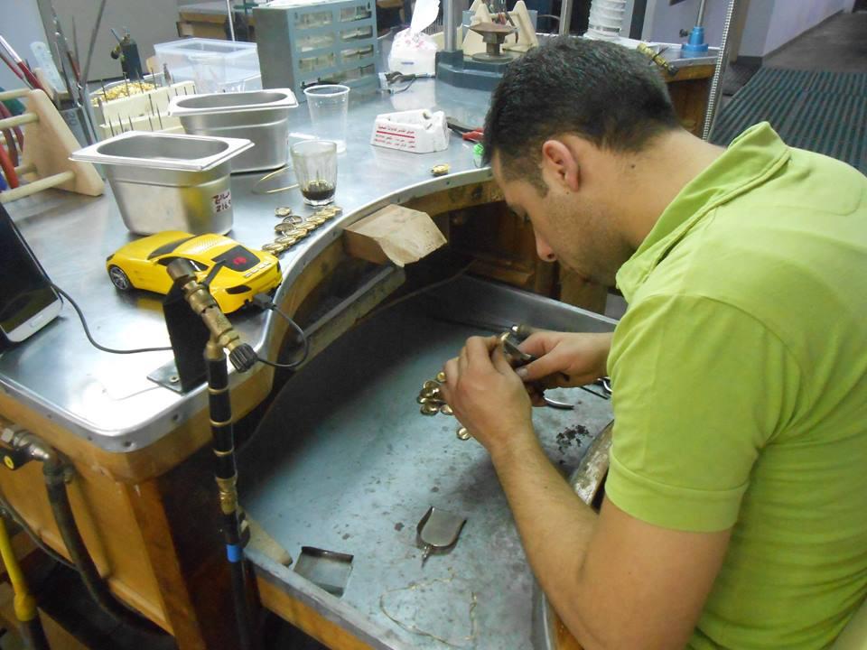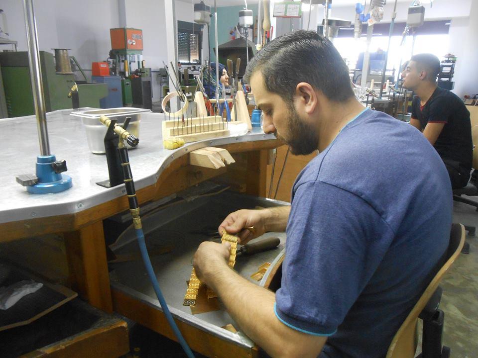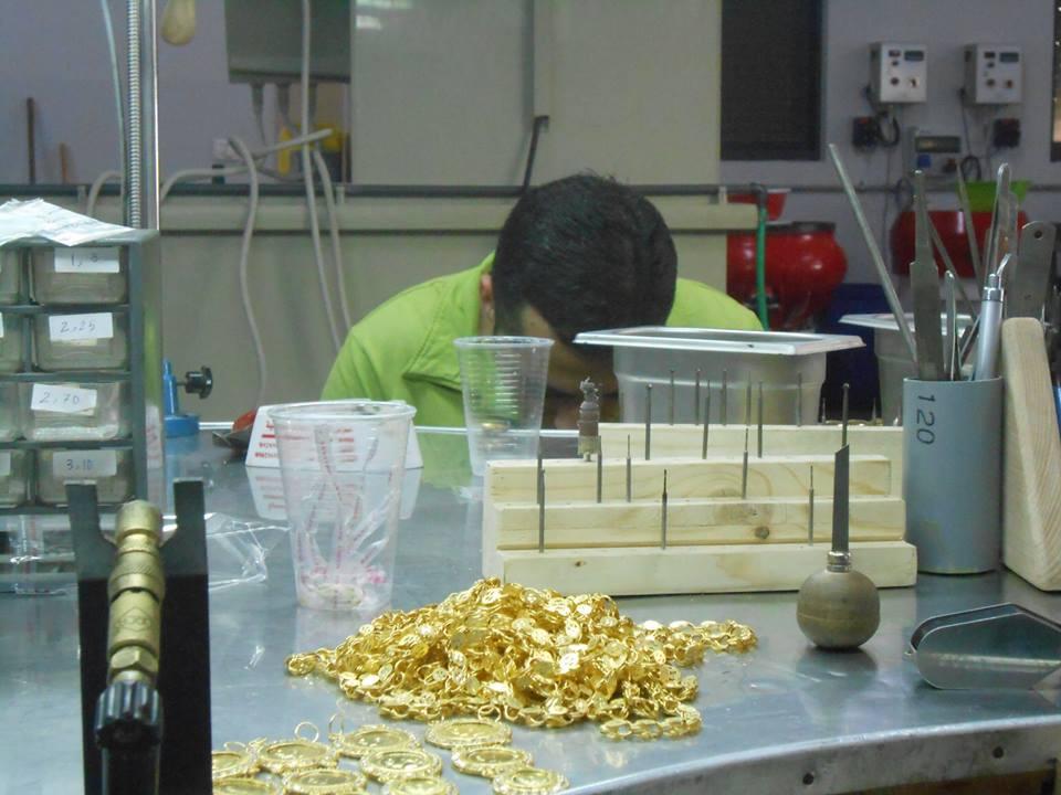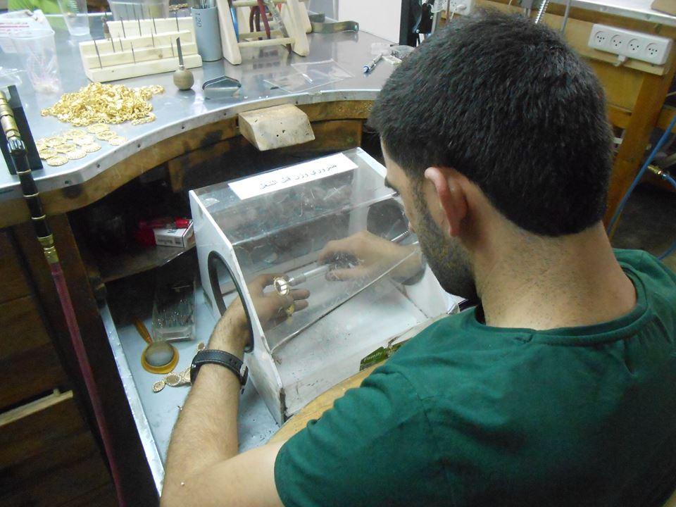 أوضح مدير الإنتاج في شركة مجوهرات القواسمة حسني القواسمة آلية إنتاج الذهب والتي تبدأ من تصميم الموديل حسب احتياج ورغبة السوق، ثم تبدأ عملية تشكيل القالب بفنيات عالية، موضحا:" نصممه تصميم يدوي كامل، بعدها نعمل قالب لكل موديل، ثم نضخ الشمع فيه، ثم مرحلة السكب من خلال استعمال أحدث تقنية في العالم كله، بعدها يمر بمرحلة البرادة والتنعيم والتلميع وتلوين الذهب وبمعنى آخر اللون الذي يميز الذهب من شركة لأخرى. وهذه المرحلة تستغرق قرابة 18 ساعة".