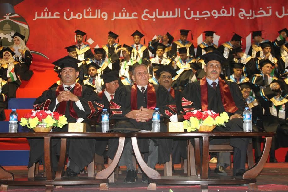 ومن جانبه نقل ممثل رئيس دولة فلسطين أ.د.رياض الخضري تحيات الرئيس محمود عباس " أبو مازن " وتهنئته وشكره للجامعة ممثلةً بمجلس أمنائها ، ورئيسها ، ونوابه ، ومدراء الفروع، والأكاديميين والإداريين، والعاملين بالجامعة والطلبة، أملاً بأن يشهد الأخ الرئيس أبو مازن احتفالات الدفعة الجديدة من خريجي الجامعة العام القادم.